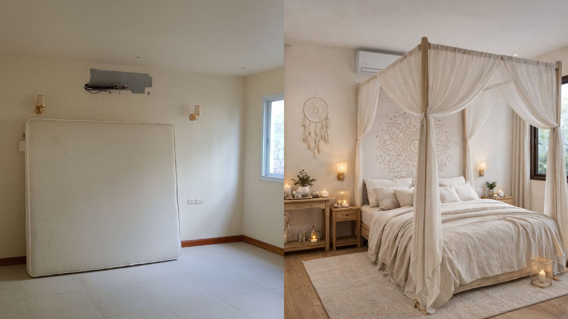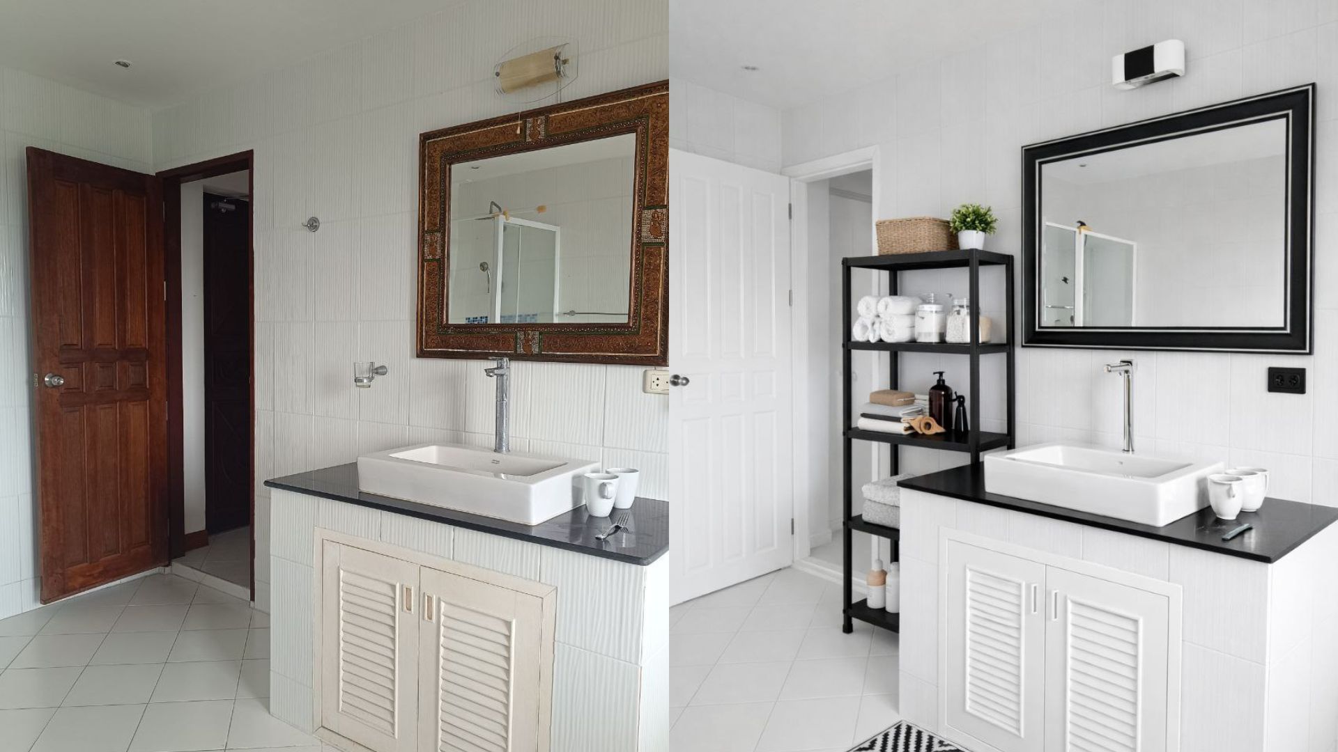 Tile replacement, wall & ceiling painting, lighting upgrades, installation of new furniture and decor.